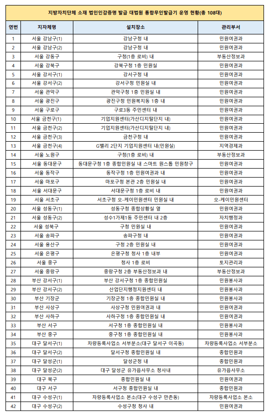 법인인감증명서는 등기소 창구 또는 무인 발급기에서 발급 가능합니다. 법인인감증명서는 인터넷 발급이 불가합니다.